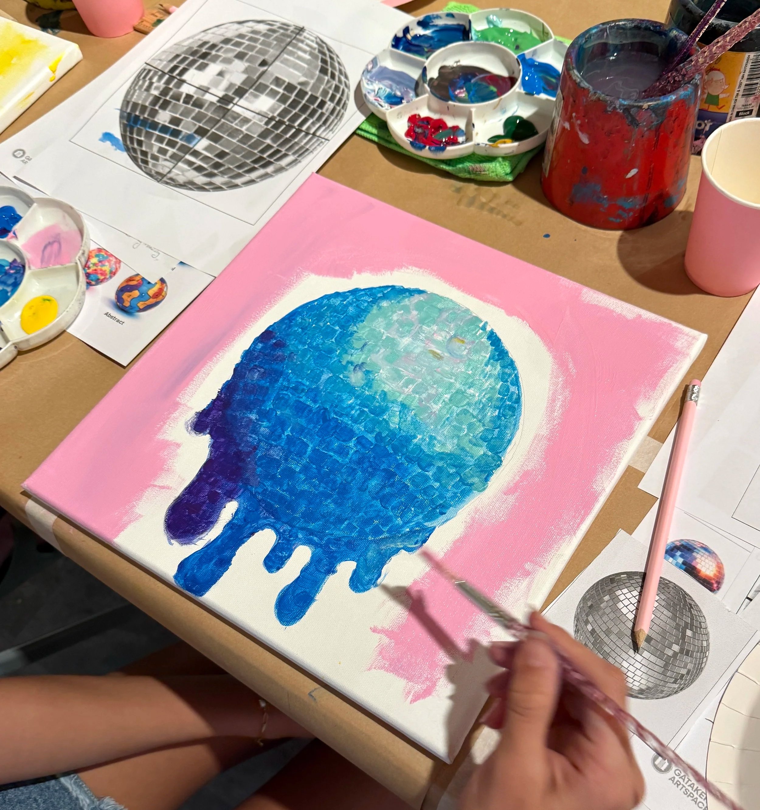 All sessions take place inside my Dear Diary Exhibition at Gatakers Artspace (Gallery 2), where you’ll be immersed in the Disco Installation as you create your own Disco or Stargazing–inspired artwork.